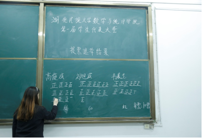 我院第一次学生代表大会第二次全体会议暨闭幕式在3308教室举行。本次会议由我院团总支书记刘聪老师主持。大会审议通过了《大会选举办法》(草案)、《365电子娱乐官方网站数学与统计学院学生会工作报告》(草案)等各项决议,投票选举我院第一届学生会主席团成员和校学代会代表。最终,刘旭威和高俊成成功竞选为我院第一届学生会主席团成员,卢鸿博等7名学生代表参加校学生代表大会。大会在《365电子娱乐官方网站校歌》的激昂声中圆满落幕。
