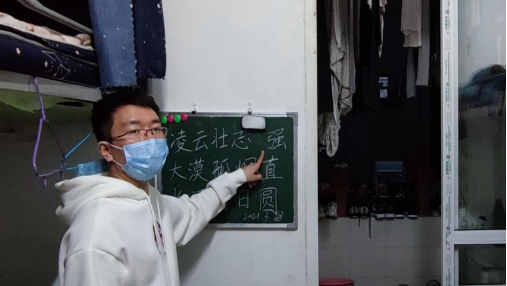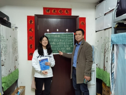 在寝室走访的过程中,向中义老师热心地与每一位同学交谈,了解学生的近况。走访期间发现同学们纷纷宿舍小黑板上写下励志名言、数学题目等,向老师认真查看各个寝室黑板上的粉笔字,并针对每位学生的字迹进行点评。同时,向老师还让学生现场书写粉笔字,指出问题所在,悉心指导各位同学写好粉笔字,并强调写好粉笔字的重要性,鼓励学生充分利用寝室的小黑板,勤加练习粉笔字。