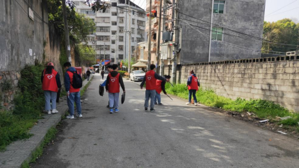 (我院青年志愿者拾捡垃圾)