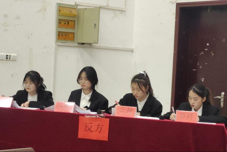 (反方同学认真倾听对方辩论)