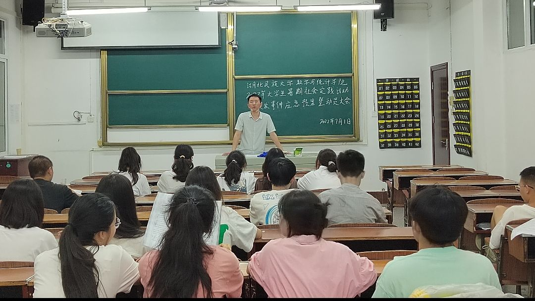 本网讯(记者 樊蕙/文 见习记者 刘蓟/文 刘蓟/摄)为加强学生对暑期社会实践的相关要求的了解以及更好的开展暑期社会实践活动。7月1日晚,我院于3203教室召开2022年大学生暑期社会实践活动突发事件应预案暨动员大会会议。本次会议由我院团总支书记刘聪老师主持,各团队全体成员到场聆听。