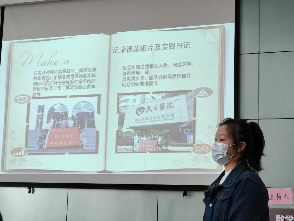 会议伊始,由主持人杨砚童介绍五个参与团队以及五位评委老师,并宣读本次的答辩规则。紧接着,五个团队按照抽签顺序依次上台进行答辩,他们分别从实践主题、实践内容、项目成果、活动总结等方面积极展示自身实践团队的主要特色和亮点,分享团队在实践过程中的收获与感悟。