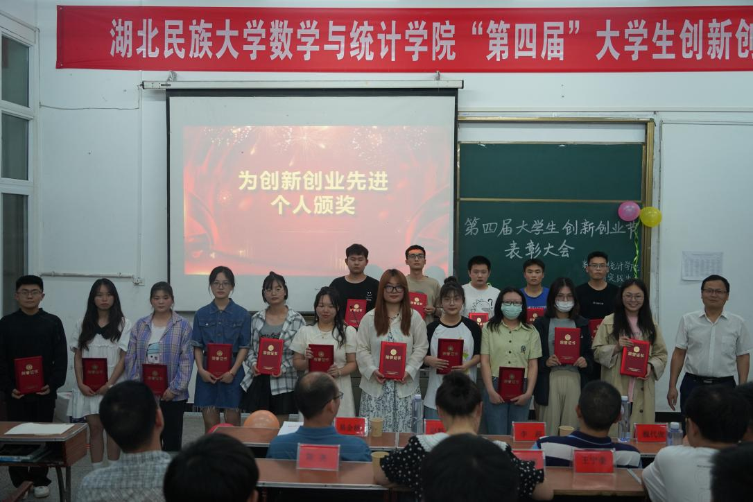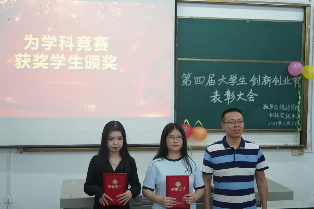 本网讯(曹莎、沈娟/文 向高贤/摄)6月7日晚上七点,我院创新实践中心在数学与统计学院三楼3307教室举行“第四届”大学生创新创业节表彰大会。学院特别邀请创新创业学院副院长李超出席,数学与统计学院党总支书记赵魁轩、院长魏代俊老师、党总支副书记易金桥、学生科科长黄丽娜及创新实践中心全体教师参加本次大会。本次会议由学院统计学专业大二学生杨砚童主持。