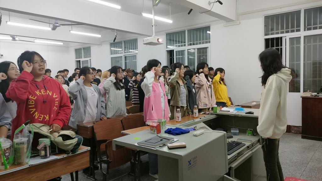活动伊始,全体同学合唱共青团团歌,朗读宣誓词。紧接着,主持人分别从“肩负新时代使命,牢记新征程担当”、“坚定文化自信,坚持守正创新”、“弘扬宪法精神,建设法制中国”这三个方面对本次团日活动进行讲解,让同学们对我国文化更加充满信心,进一步厚植爱国主义情怀。同学们经过本次团日活动学习,发表了自己的体会与感语。