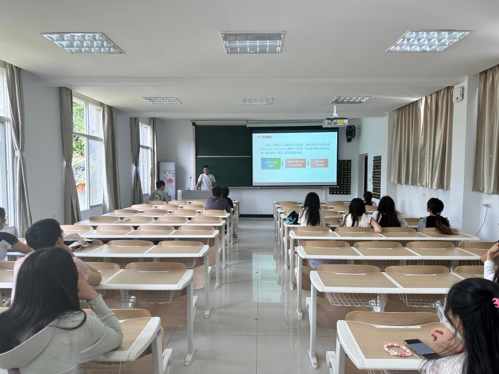 为做好生源地助学贷款还款工作,加强毕业生“感恩、诚信”教育,积极践行社会主义核心价值观。5月13日下午,我院在3405教室开展20204届毕业生生源地助学贷款还款流程培训暨诚信感恩宣传教育活动,本次活动由辅导员廖祥宇老师主持,相关毕业生到场聆听。
