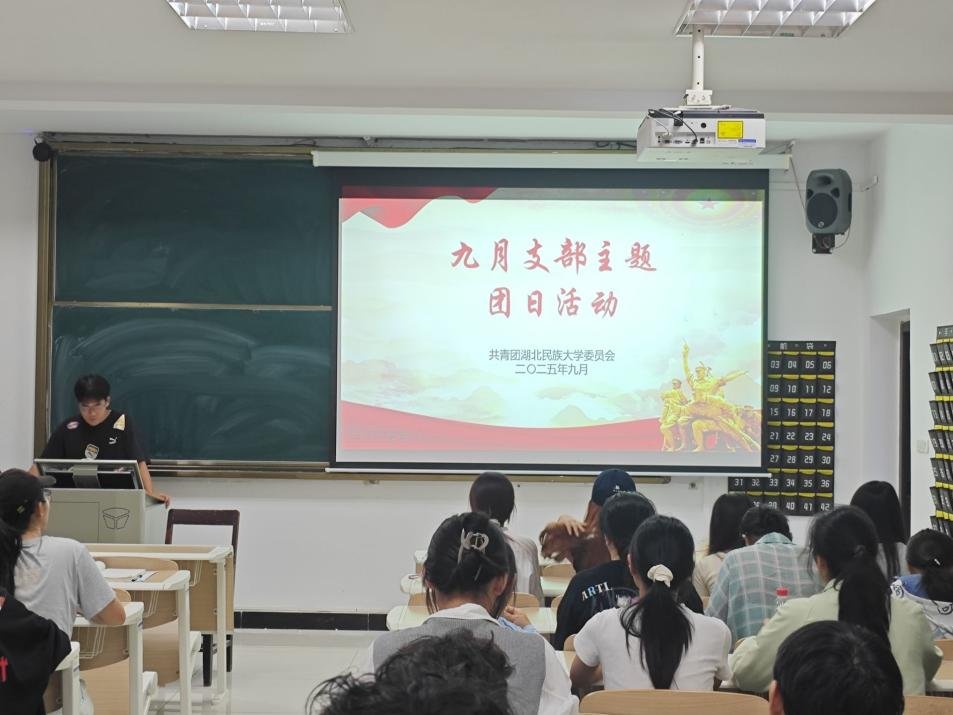 在团日活动环节,各班团支书带领同学们回顾中国人民抗日战争的艰苦历程,从重要战役到英雄人物,从民族抗争到历史意义,引导同学们深刻理解抗战精神中所蕴含的爱国主义、团结奋斗和自强不息的核心价值。活动号召新时代青年铭记历史、传承红色基因,坚定“青春报国,复兴有我”的理想信念。