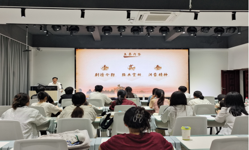 谷秋阳从“什么是红色音乐”“什么是红色音乐党课”两个问题切入,以红色歌剧《沂蒙山》为例进行深入剖析。本次授课从剧情介绍、经典赏析、沂蒙精神三个方面展开:歌剧《沂蒙山》以大青山突围、渊子崖保卫战为题材,讲述了海棠、林生、夏荷等在国家存亡与个人命运的纠缠中牺牲小我,军民一心,团结抗战的故事,生动展现了沂蒙山区群众参军参战,拥军支前的感人事迹。随后,谷秋阳带领同学们赏析歌剧,沉浸式体验歌剧所蕴含的革命情怀。最后,谷秋阳对民族歌剧《沂蒙山》所蕴含的“沂蒙精神-党群同心、军民情深,水乳交融、生死与共”进行概括总结。