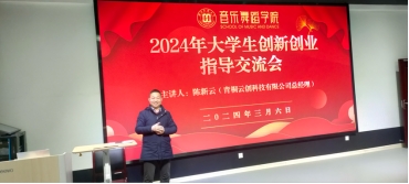 2024年3月6日青桐云创(武汉)科技有限公司总经理陈新云莅临我院开展创新创业讲座。音乐舞蹈学院党总支书记张蕊参加活动,并致欢迎词。学院部分教师和学生参加此次讲座。