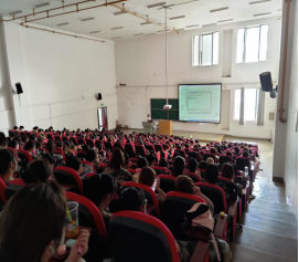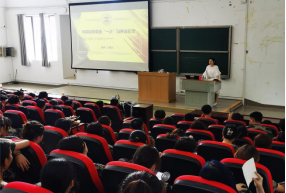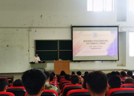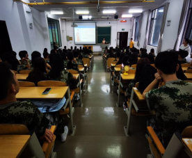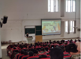 9月8日,学生科单家迪在5A207给全体新生进行入学教育,本次主题为纪律教育、诚信教育、生命安全教育、防电信诈骗和抵制非法校园贷为主的“六防”安全教育。
