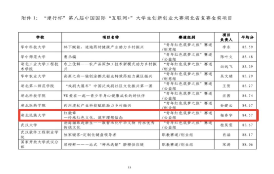 红徽章荣获建行杯”第八届中国国际“互联网+”大学生创新创业大赛湖北省复赛“青年红色筑梦之旅”赛道金奖