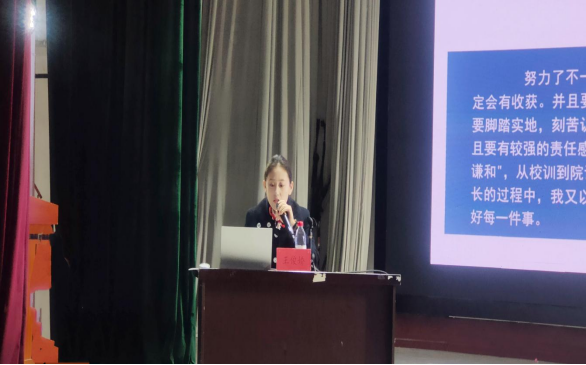 国家奖学金获得者张静怡以“在路上”为主题,从博学—求学者、博爱—延续者、立人—坚定者、达人—拓展者四个方面展开分享,她在分享过程中也希望同学们不断地去调整步伐、改善心态、激励自己、不断超越自己。国家奖学金获得者王俊娇以“在心里种花,人生才不会荒芜”为引,从个人思想、学习、实践、创新创业、工作等方面展开讲述,她寄语同学们“路虽远,行则降至。事虽难,做则可成”。特等奖学金获得者白子扬以“心向往之,行必将至”为主题,通过个人思想、专业学习、志愿服务、创新创业等方面进行分享,他寄语同学们“学一门核心技能、正视自己的不足,锻炼自己,抓住每一个上台的机会”。特等奖学金获得者赵艺辞以“在实践中淬炼青春”为主题,向大家分享了“社会实践”方面的经验,她告诫广大同学注重在实践中学真知、悟真谛,加强磨练,增长本领。