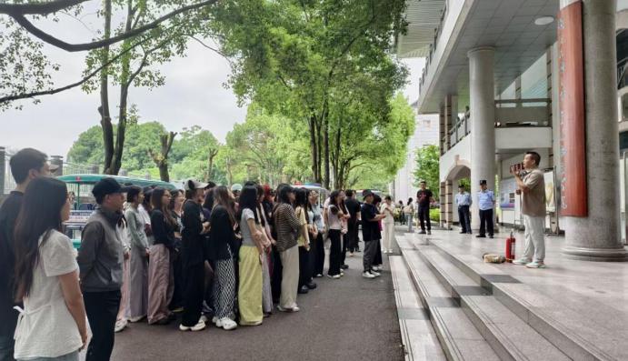 (文字:冉伟;图片:杨倩、唐自君;审核:胡自爱)5月27日,为增强师生消防安全意识,提升应急处置能力,音乐舞蹈学院联合学校保卫处消防科在音乐舞蹈学院教学楼组织了消防演练,音乐舞蹈学院百余名师生参加。