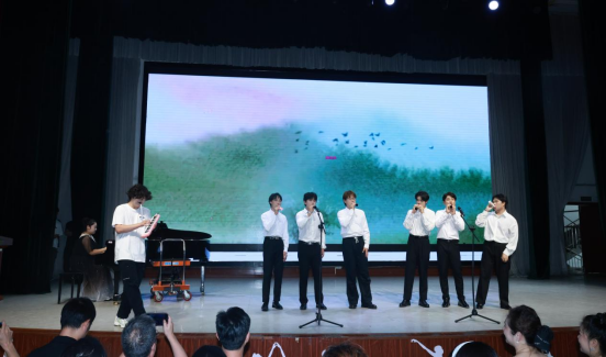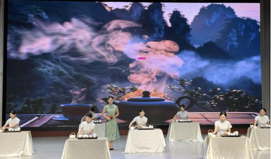 专业展示环节精彩纷呈,充分彰显学院艺术教育的丰硕成果。音乐学专业以合奏《南屏晚钟》拉开帷幕,合奏音韵悠扬,尽显专业底蕴;舞蹈学专业作品《卡普》以灵动舞姿和饱满情感,诠释了舞蹈艺术的独特魅力;航空服务艺术与管理专业则通过节目《云端礼遇》,将职业仪态、礼仪风范与茶艺表演融为一体,生动呈现专业特色,引来全场阵阵掌声。