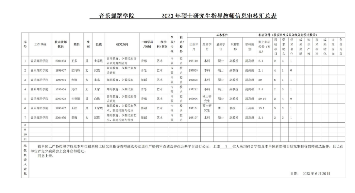 音乐舞蹈学院2023年硕士研究生指导教师上岗资格名单公示