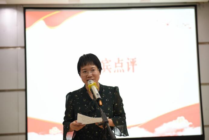 陈龙菊点评。她首先对各参赛选手们精彩的表现表示赞赏,激励在场青年学子在实现人生理想的同时,也要践行书香润泽人生,从品读经典中汲取前辈们的智慧,提升生活的幸福感,进而成为更好的自己。同时她从实践教学层面高度赞扬我院通过理论结合实践的方式开办品读经典活动,充分展现出思政课的特色和亮点。