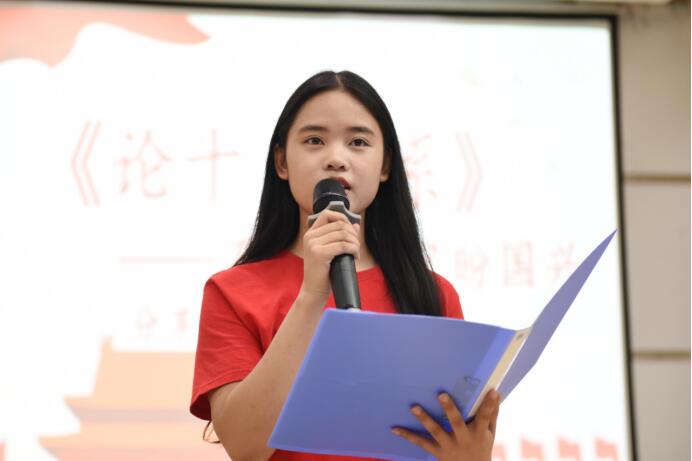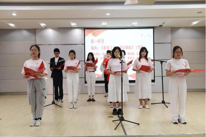 活动分为四个篇章及诵读、品读、心得分享三个环节。学生团队声情并茂诵读红色篇章,与现场学生对诵读内容进行互动问答,并由读书明星分享自己的心得感悟。其中2号选手向海璐以“不惧黑暗只盼国兴”为主题进行品读,她表示作为新时期青年应牢记使命,不忘初心,号召青年一代坚定理想信念,传承党的红色使命,筑梦时代新征程,在党的领导下成为社会主义的建设者。4号选手李润以“学党史,观现实,创未来”为主题分享感悟,她认为青年学子应勇担责任,在新的征程上敢于斗争,努力提升自身素质。