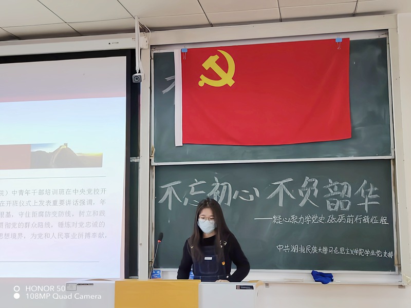 本网讯(见习通讯员 王晓霞 祝享菊/文 黄丽兰/图)3月17 日下午,我院学生党支部在德智楼9B210教室成功开展以“不忘初心,不负韶华——凝心聚力学党史,砥砺前行新征程”为主题的党日活动,我院学生党支部书记杨婷,教师党员毛召、兰洁以及全体学生党员、预备党员参加此次活动。