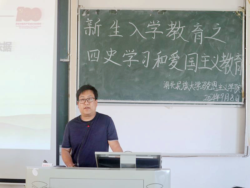本网讯(通讯员 田金爽/文 吴丁鑫/图) 9月8日下午,我院在德智楼9A411教室成功开展新生入学教育之“四史”学习和爱国主义教育。我院学科建设科科长张恩受邀出席本次活动并担任主讲人。我院及法学院大一全体新生参加此次活动。