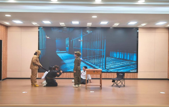 陈海岩点评。他首先对同学们的精彩表现表示肯定,同时他建议学生在情感表达与情节高潮设置上可以更加优化,要更加注重细节,提高整体配合度。最后他希望同学们继续保持和增强对红色经典文化的热爱。