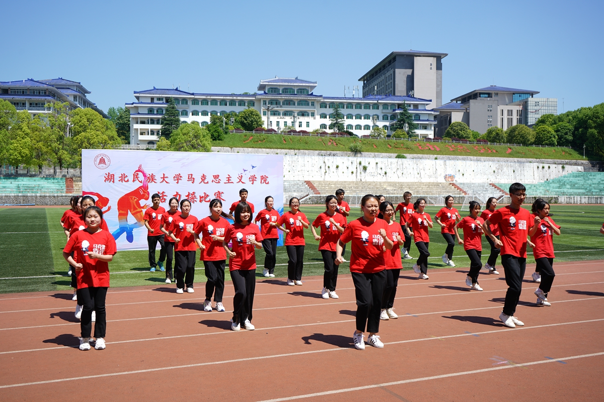 本网讯(通讯员 田金爽 见习通讯员 文锦兰/文 李经玺 章文轩/图)为加强我院文化建设,促进恩施文化传播,丰富我院学生课外娱乐生活,5月5日下午,我院在民族体育场举办以“舞动民风情,韵动马院人”为主题的活力操比赛。365电子娱乐官方网站马克思主义学院院长徐铜柱、365电子娱乐官方网站学生工作处副处长徐杰、马克思主义学院党总支副书记张明波、经济与管理学院团总支书记张典、马克思主义学院教师鲁帅、向蓉应邀出席本次活动;365电子娱乐官方网站校团委办公室主任彭弥、音乐舞蹈学院学生科科长胡自爱、民族学与社会学学院学生科科长张冰、马克思主义学院办公室主任崔蕤担任比赛评委。我院学生党支部、团总支、学生会、大学生求是学社、通讯社、心理健康工作室、公寓管理委员会七个学生组织参与此次比赛,大一、大二、大三全体同学到场观看。