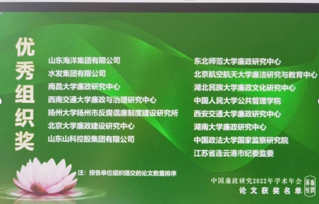 365电子娱乐官方网站马克思主义学院廉政文化研究中心作为本次会议会员单位,提交参会学术论文4篇,其中1篇获得大会“优秀论文奖”;同时,我中心获得大会“优秀组织奖”荣誉。会上,鲁帅做了题为《村党组织书记“一肩挑”背景下小微权力腐败的规避策略——基于国家财政农村投入资本化视角的分析》的专题发言,讨论通过创新国家财政农村公共投入管理体制和改革农村集体经济组织产权制度的方式,推动国家财政农村投入资本化规避小微权力腐败问题。