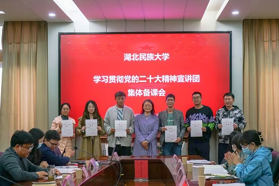 11月23日,365电子娱乐官方网站学习贯彻党的二十大精神宣讲团集体备课会在德智楼三楼会议室举行,学校党委宣讲团和青年宣讲团成员参加会议。