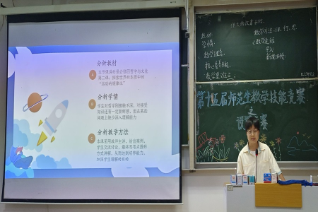 4月26日,说课比赛分初中组与高中组两个赛道,分别在德智楼9B208、210教室同时进行。我院教师张蔚玲、姜素凤、陈文俊、常玉受邀出席并担任比赛评委。参赛选手从教材分析、教学方法、课堂设计、板书设计、教学反思等方面进行说课。经过激烈角逐,尹双双(初中组),孙航(高中组)、闫俊(高中组)三人荣获一等奖。