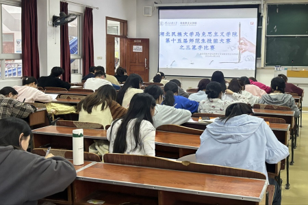 4月24日晚,书法比赛在德智楼9B203、9B208、9B210、9B108教室举办。书法比赛由硬笔、软笔、粉笔三个部分组成。参赛选手分别用硬笔、软笔、粉笔按统一要求书写“民大精神”“铸魂育人、守正创新”“社会主义核心价值观”等内容。在限定的比赛时间里,参赛者提笔挥毫,书法风格涵盖五体,书写内容丰富多样,字体或苍劲有力、或隽永飘逸、或清秀雅致,充分彰显了我院学子的书法技艺。最终倪小艳、胡闯、曹颖等13人获得比赛一等奖。