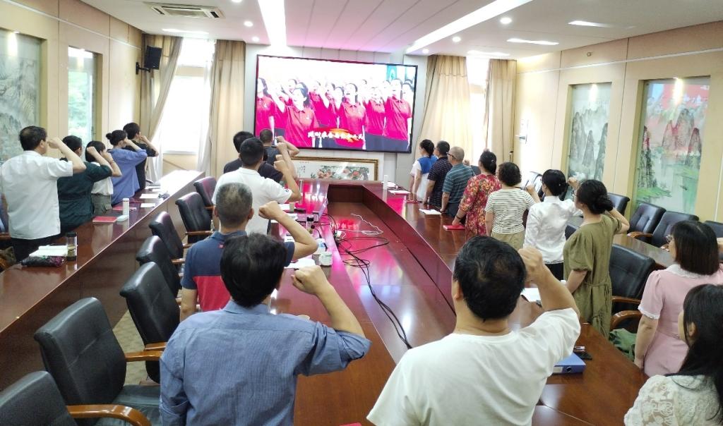 活动中,全体党员重温入党誓词,诵读《党章》总纲之23-25自然段,现场缴纳7月份党费。