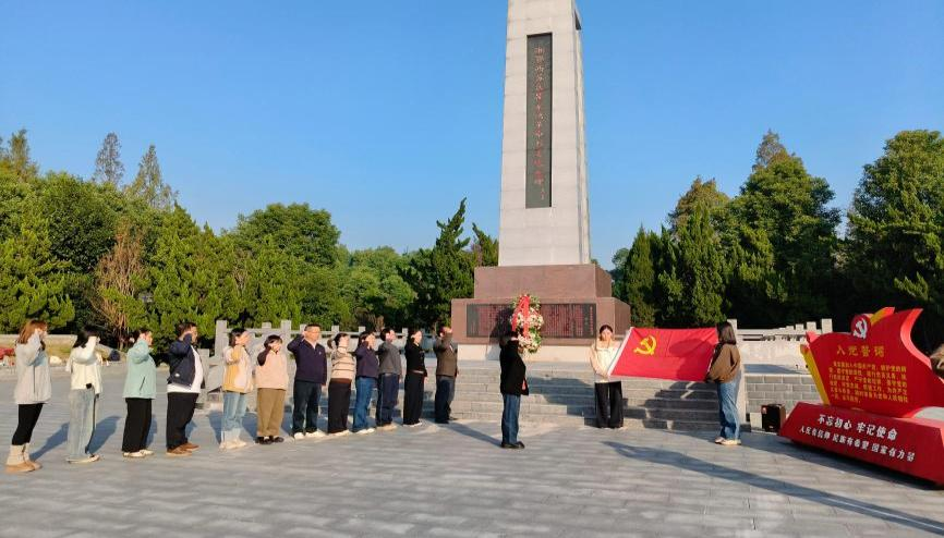 随后,师生代表在纪念馆讲解员的引导下,有序瞻仰革命烈士纪念碑并敬献花篮,在重温入党誓词后依次参观瞿家湾红军老街及湘鄂西革命根据地旧址群。通过聆听贺龙、周逸群等革命先辈的英雄事迹,师生们在深切缅怀之中进一步筑牢理想信念根基。全体人员齐声高唱红色经典歌曲《洪湖水浪打浪》,在激昂旋律中感悟革命岁月,砥砺初心使命。