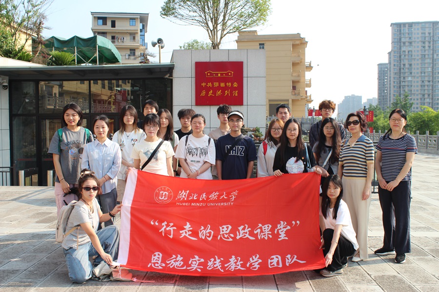 6月12日,马克思主义学院组织开展以“行走的思政课堂——读书明星走进红色文化基地”为主题的《毛泽东思想和中国特色社会主义理论体系概论》实践教学活动。本次活动由该课程教研部教师带领本学期在“品读经典”教学活动中获“读书明星”称号学生、马克思主义学院部分学生前往恩施、来凤、鹤峰、咸丰等地进行实践教学。