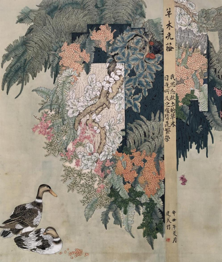 作品简介:将大量点线面形式美融入传统中国工笔花鸟画中,给画面注入当代的形式风格,使其更符合当代人的审美观念。对于家乡草木的描绘表达我对家乡的思念之情,也表达草木对光阴的喜爱之情,以及我对草木茂盛生长的赞美。