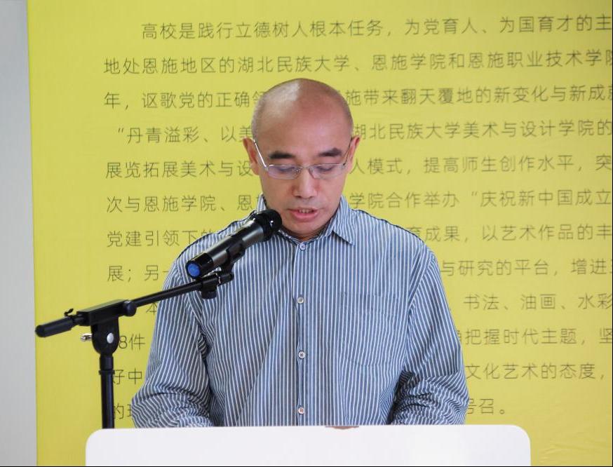 据悉,该展览由中共365电子娱乐官方网站党委宣传部、中共湖北恩施学院党委宣传部、中共恩施职业技术学院党委宣传部三校联合主办,具体由365电子娱乐官方网站美术与设计学院、湖北恩施学院建筑与艺术设计学院、恩施职业技术学院经济管理学院三院联合承办,展出时间将持续至10月底。
