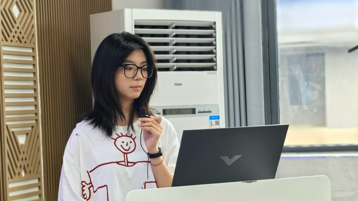项目组核心成员姜蓓美副教授现场展示前期作品