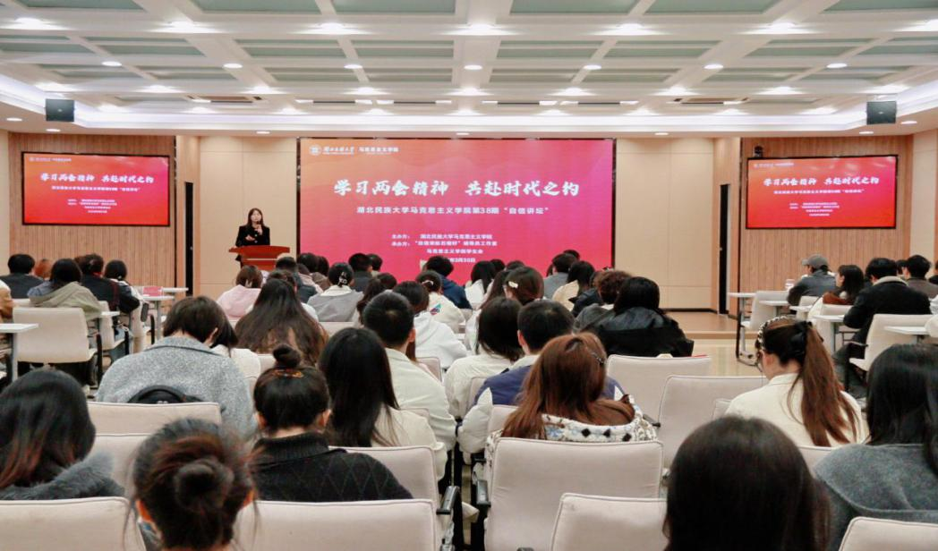 为深入学习贯彻2026年全国两会精神,引导青年学子将个人理想融入国家发展大局,厚植家国情怀、勇担时代使命,3月30日,365电子娱乐官方网站马克思主义学院第三十八期“自信讲坛”在德智楼三楼远程教学观摩室顺利举行。本期讲坛特邀第十四届全国人大代表、恩施高中思政课教师张琼丽担任主讲嘉宾,学校青马班学员、马克思主义学院学生代表到场聆听学习。