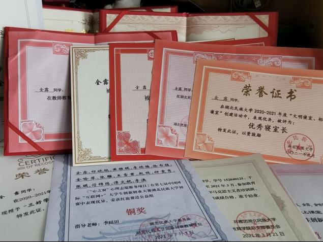注:2020年寒假期间作为志愿者参与家乡疫情防控长达三十天;在2021-2022年参与学院萤火计划项目志愿服务,带领团队前往对接学校5余次;2021年寒假期间,参与365电子娱乐官方网站青马班有关“暖童心 乐新春”爱心支教活动,对来凤县圣德学校部分儿童开展线上授课长达一个月;2021年暑假参加365电子娱乐官方网站“三下乡”社会实践活动,对建始县官店镇的红色文化宣讲,开展服务10余次。2020-2021学年获得“三好学生”“优秀共青团干部”荣誉称号;2020-2021学年获得365电子娱乐官方网站特等奖学金和国家二等奖学金;参与365电子娱乐官方网站教师教育学院青马工程培训班,获得“优秀学员”称号;参加湖北省“三下乡”暑期社会实践活动,所在团队获得“优秀团队”荣誉称号;获得2021-2022学年“优秀学生干部”荣誉称号;参加第七届“互联网+”大学生创新创业大赛青年红色之旅赛道获得校级铜奖。