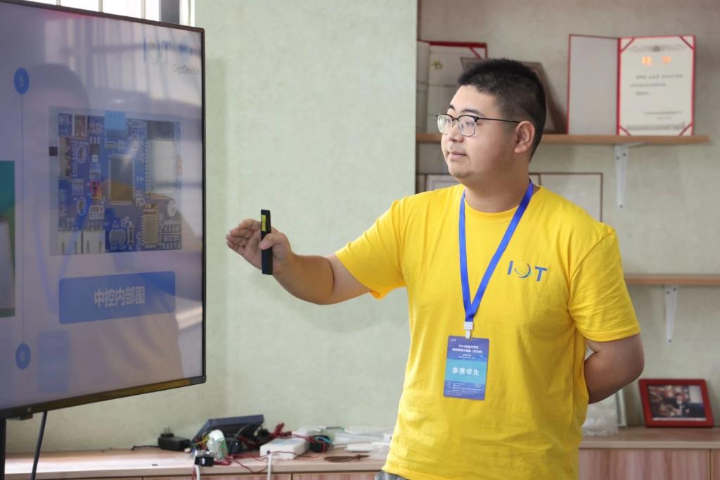 说起印象最深的竞赛,龙子鸣回忆起2023年参加的“全国大学生物联网设计竞赛”。在比赛筹备阶段,他偶然得知有一款能实时测算心率的心电监测芯片,并决定将其运用在比赛作品中。然而关于这款芯片的资料非常稀缺,他们只能从芯片发出的万千数据中解析出仅有一两个字节的心率数据。在准备区域决赛时,他们设计的作品无法正常运行,一次次尝试修改代码甚至更换晶振(一种电子元器件,用于给芯片提供时间基准,可比喻为“芯片心脏”)都毫无效果,代码的运行始终卡在晶振初始化阶段,这让队员们感到很崩溃。“最后再试一次,最后一次!”龙子鸣不断鼓励自己坚持并继续寻找解决方案。偶然间,他从一个废旧电路板上拆下一个晶振,并焊接在作品电路板上,这一操作竟让作品完美运行。凌晨,龙子鸣走出实验室,抬头仰望天空,那悬挂的月亮犹如心中的一盏明灯,照亮着未来的路。“竞赛获奖并非最终目标,学得扎实,学得透彻才是目的所在。”龙子鸣认为,竞赛应该是一个以赛验学、以赛促学的过程,是当代大学生提升综合能力的重要平台。