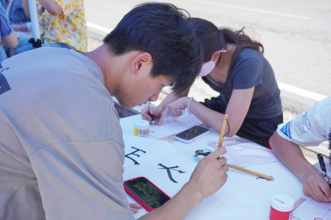 参与者进行书法体验