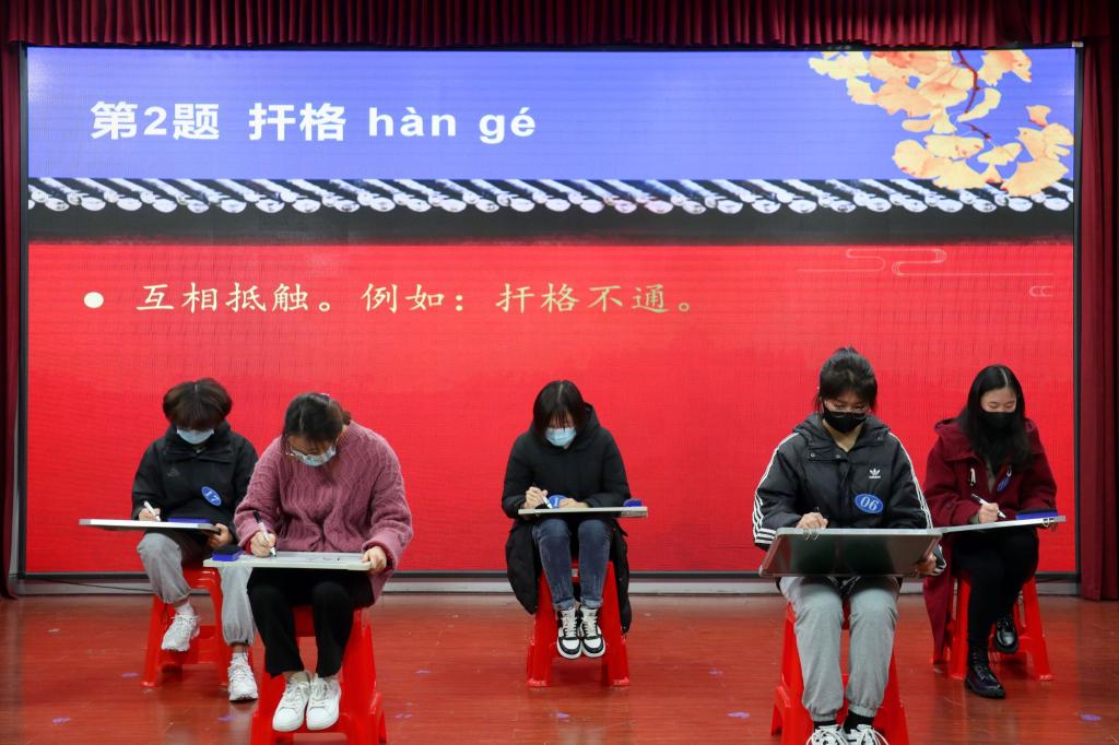 经过层层选拔,共二十名选手跻身决赛。比赛共设四轮,在规定时间内书写正确数量最多者进入下一轮比拼。比赛词语涉及生物习性、人文地理、宗教信仰等多个领域,题目囊括“枭雄”、“懵懂”、“怃然”等中等难度词语及“蒇事”、“毰毸”、“焚膏继晷”等高难度词语,充分考验选手们的字词储备量和文学素养。选手们纵情发挥,难分伯仲,比赛高潮迭起,观众也受氛围感染,跃跃欲试。