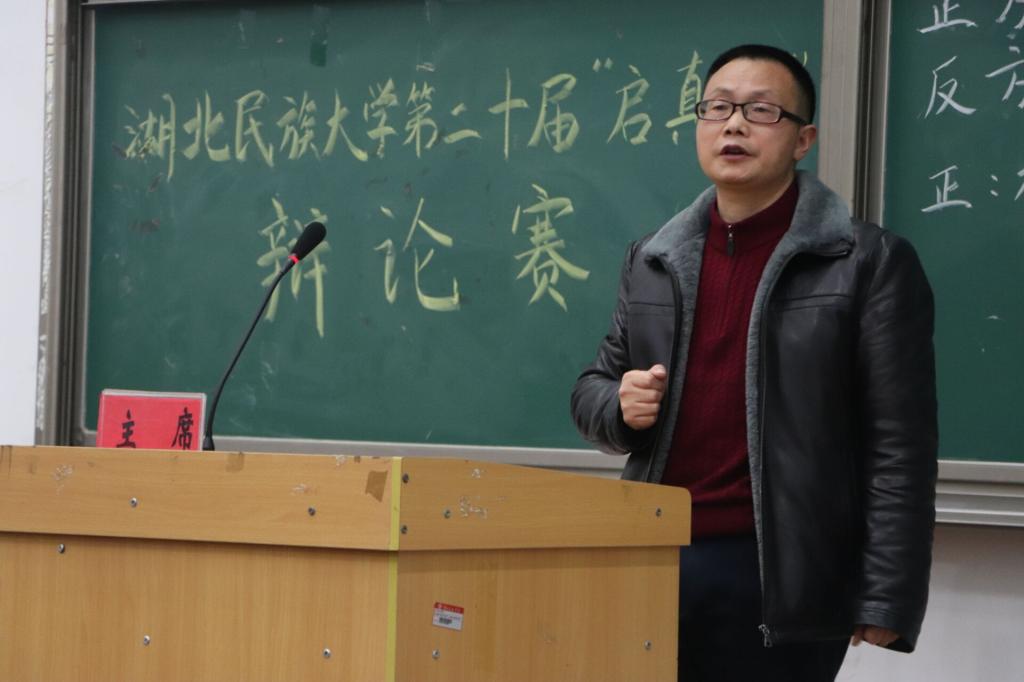 民族学与社会学学院教授、博士谭贤楚点评,他一方面表示此次辩论赛是学习的平台,另一方面建议双方辩手强化辩论逻辑和思维。
