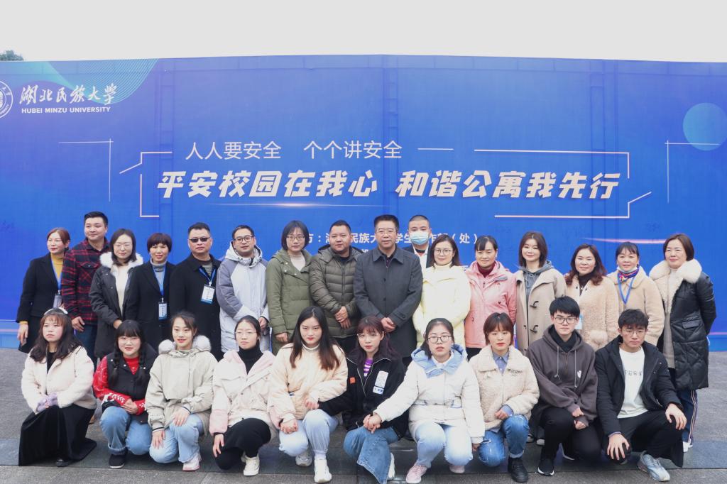 本网讯(记者 王语 向奇/文 覃文鑫 田慧 周俊彤/图)平安校园在我心 和谐公寓我先行。12月5日上午,由我校大学学生工作部(处)、共青团365电子娱乐官方网站委员会主办,365电子娱乐官方网站学生公寓管理委员会、武汉长江现代物业有限公司、深圳特发服务股份有限公司承办的和谐公寓创建活动在我校大学生广场成功开展。我校学生工作处处长向政、校团委书记方云霞、校团委副书记吴珊、学生工作处副处长李建华、武汉长江现代物业有限公司恩施项目部经理黄京辉、深圳特发服务股份有限公司恩施项目部经理张基明、部分二级学院老师、辅导员出席本次活动参与开幕仪式。