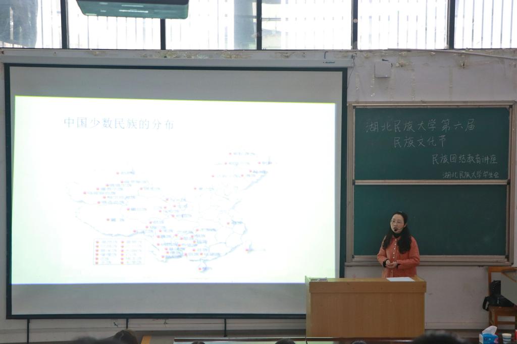 本网讯(记者 张玉婷/文 廖子怡/图)11月26日下午,我校于修远楼5b404举办民族团结教育讲座,民族学与社会学院副教授姜爱担任本次活动主讲人,现场听众约300人。