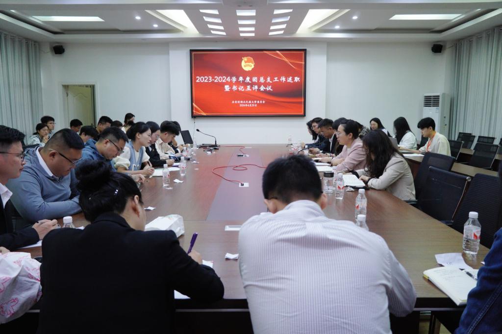 4月29日,我校2023-2024学年度团总支工作述职暨书记互评会议在学工处二楼会议室顺利举行。本次会议由校团委副书记彭弥主持,校团委书记吴珊、副书记刘亚琼以及专职团干张典出席会议,各学院(部)团总支书记参加会议。