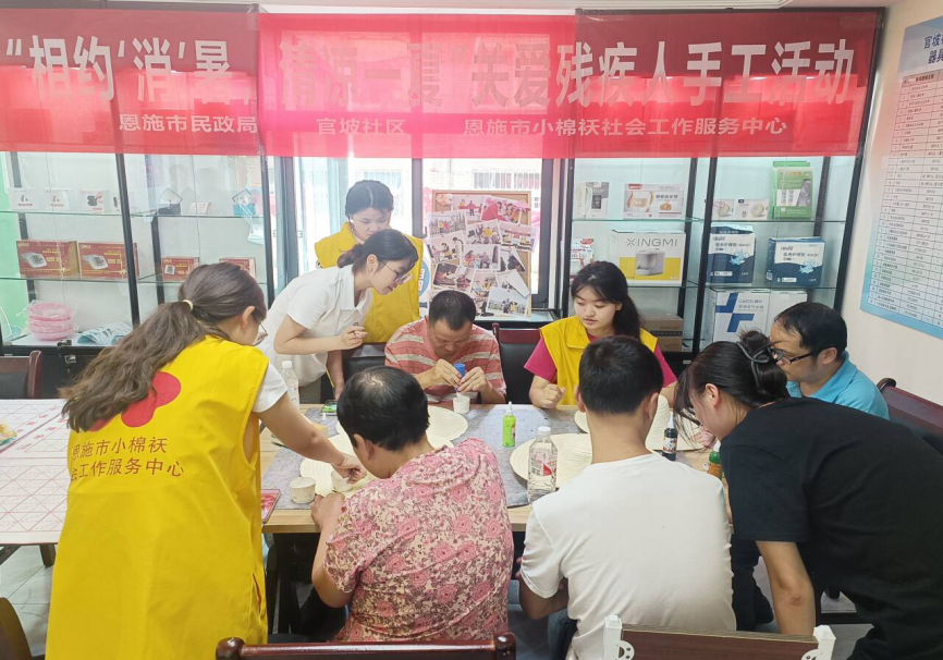 6月30日,恩施市小棉袄社会工作服务中心和我校“星伴芭蕉乡”志愿服务队,联合官坡社区在辅具中心,开展了一场别开生面的关爱残疾人手工活动。