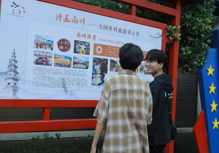 队员观看南坪乡宣传展板