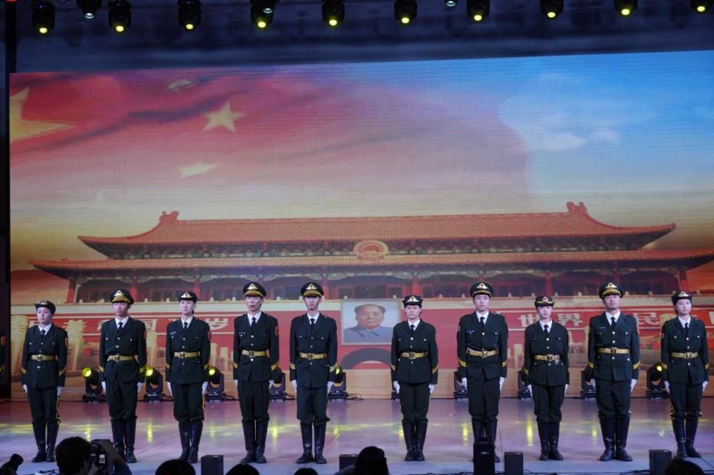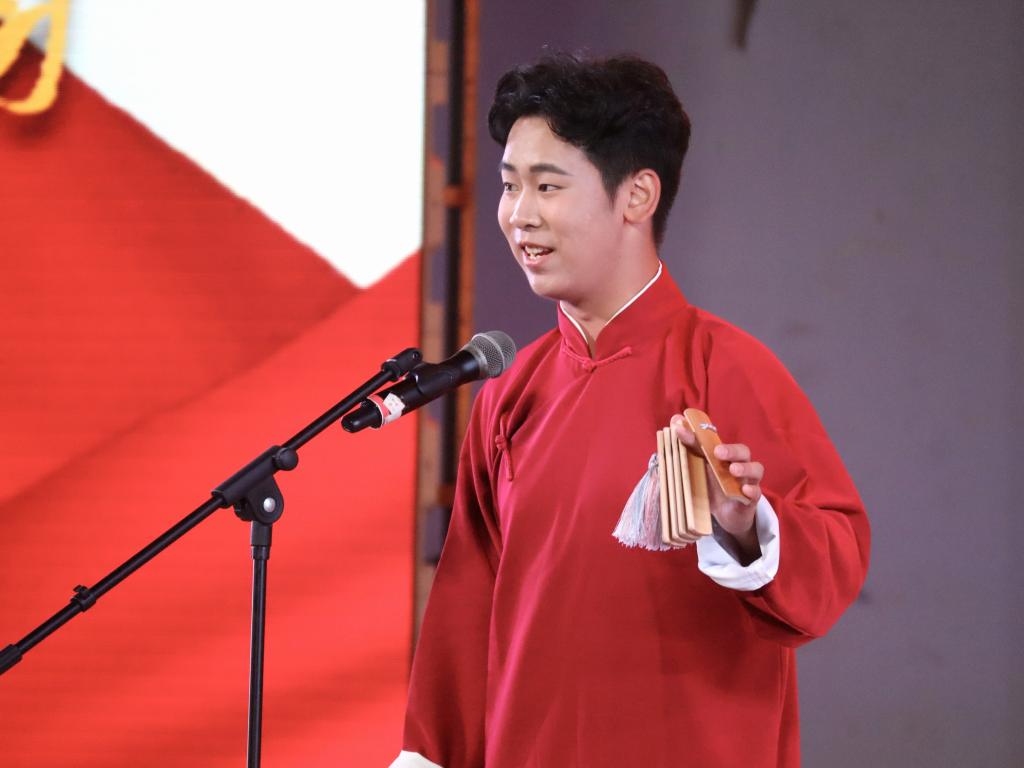 快板、情景表演《天安门广场看升旗》,快板轻快而有力地讲述了天安门广场前万人来朝的盛景,回顾我国这些年来的历史,传达了学生们对祖国的热爱。情景表演邀请了我校国旗护卫队助力,护卫队的成员们身姿挺拔,表演出了天安门升旗的情景,激励着新时代新青年承担历史使命,复兴伟大中国梦。文学与传媒学院带来的歌伴舞《逆光白》将青年大学生的活力与朝气展现得淋漓尽致。