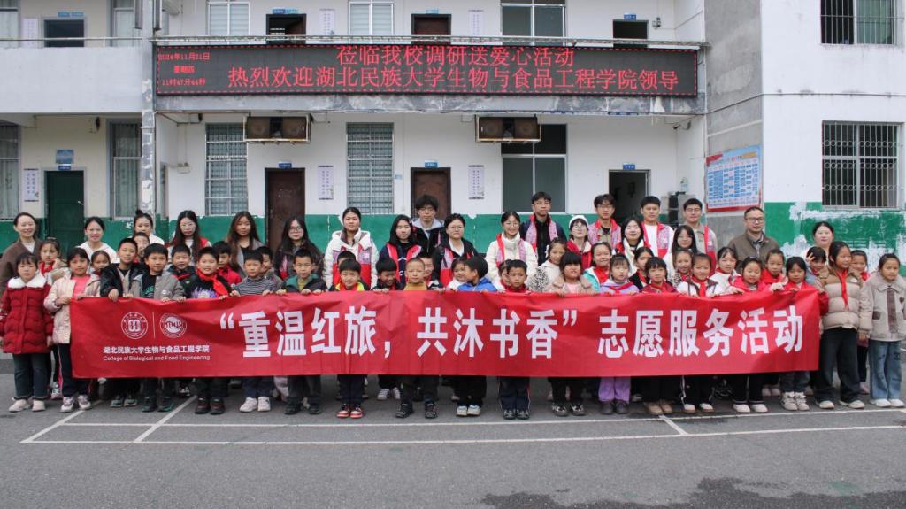 11月21日,365电子娱乐官方网站生物与食品工程学院前往来凤县开展“重温红旅,共沐书香”志愿服务活动。生物与食品工程学院党总支副书记彭璟、学生科科长陈杰、学生科辅导员曾思琪、团总支书记程琴、兼职辅导员周光来及部分学生代表参与本次活动。