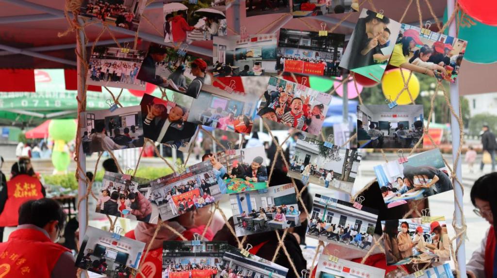 聆听感动,传递星光,红徽章协会、卡普摄影社和心理协会在志愿故事分享区倾听同学们的志愿故事、红色故事。大学生心连心互助社社长黎亚辉分享了自身支教经历,他回忆道:"孩子们下课后总会围过来,期待地问什么时候能再来上课",真挚的话语道出了志愿服务的意义与价值。分享结束后,可抽取盲盒礼物,让故事的温度化为可触的惊喜。心理协会同步开展心理疏导服务,为公益行动注入心灵关怀。