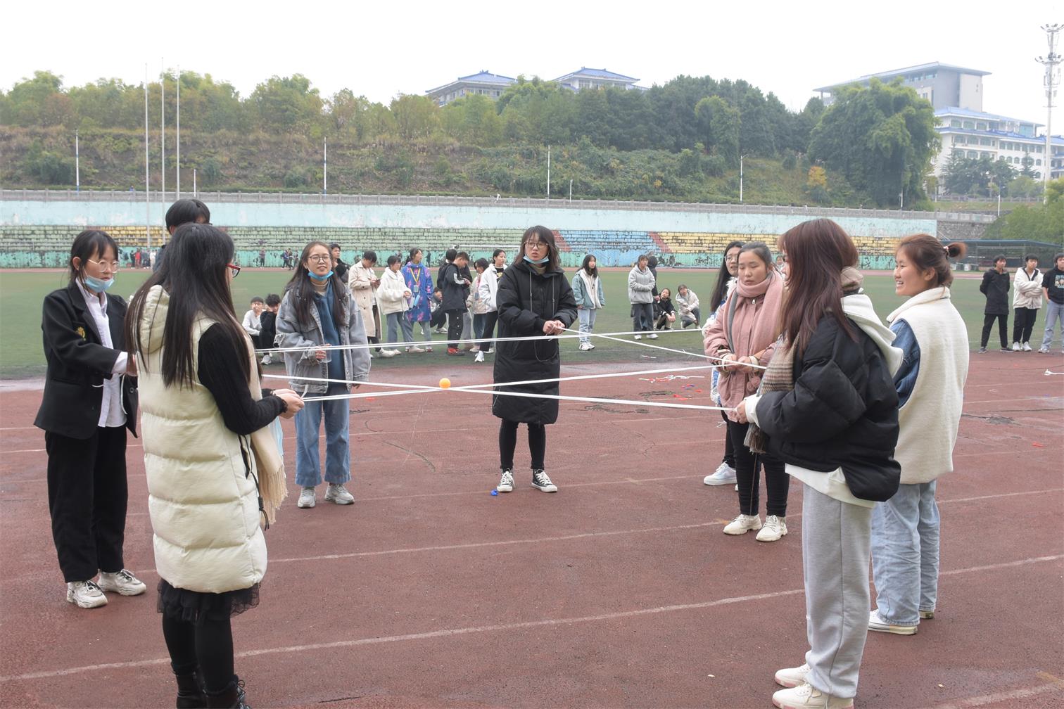 本网讯(见习记者 周树洋 张丹丹/文 李俊良/图)为加强我院学生干部队伍建设,提升团队协作能力,12月6日,我院在五环操场成功开展以“同心同行 青春共赢”为主题的第五期学生干部综合素质培训班第五次授课。大一全体学生干部参与本次活动。