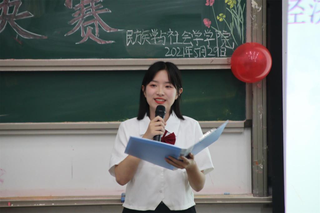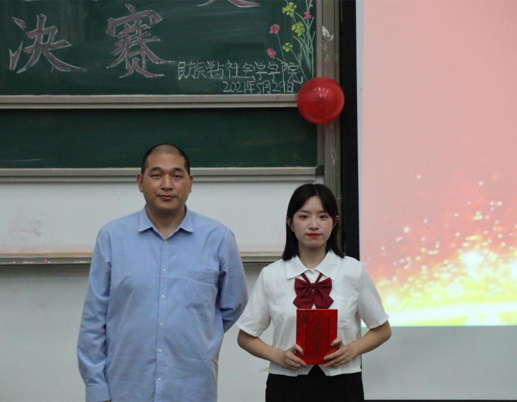 经过重重对决,共有十位选手晋级决赛。本次比赛共有《新作十八拍•党之世风》、《承“三牛精神”,做新时代牛人》、《辟蛮荒创世纪盛景,接火炬守岁月静好》、《夺冠》等十部作品。来自我院的四号选手许一柯朗诵《青春心向党,建功新时代》,她的语调铿锵有力,字字坚定,饱满的激情赢得观众阵阵掌声。外国语学院五号选手李晶深情朗读《承“三牛精神”,做新时代牛人》,她声音洪亮,感情真挚,极富感染力,清晰流畅的发音吐字、平仄顿挫的朗诵,获得观众一致好评。教育学院七号选手杨芳朗读《辟蛮荒创世纪盛景,接火炬守岁月静好》也不甘示弱,她一袭旗袍,融入民国时期风味,口音清晰,生动展现新时代攻坚克难的景象。通过精彩的一分钟朗读加时赛,最终,来自外国语学院五号选手李晶以9.5分夺得大赛桂冠。